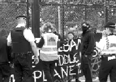 СПОСТЕРІГАЧ ЗА ДОТРИМАННЯМ ЗАКОНУ НА АКЦІЇ ПРОТЕСТУ ПРОТИ ІЗРАЇЛЬСЬКИХ ВІЙСЬКОВИХ ПЕРЕВЕЗЕНЬ СИЛАМИ КОРОЛЕВСЬКИХ ВПС ВЕЛИВОБРИТАНІЇ, НОРТОН, ВЕЛИКОБРИТАНІЯ, ПІД ЧАС ЛІВАНСЬКОЇ ВІЙНИ 2006.ФОТО: JK