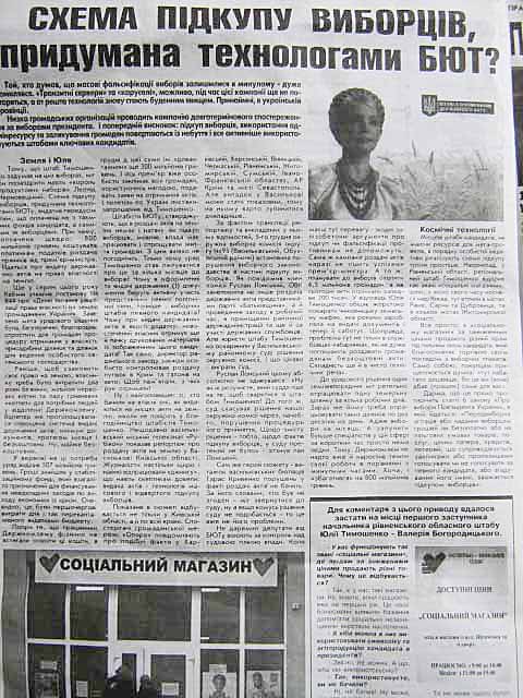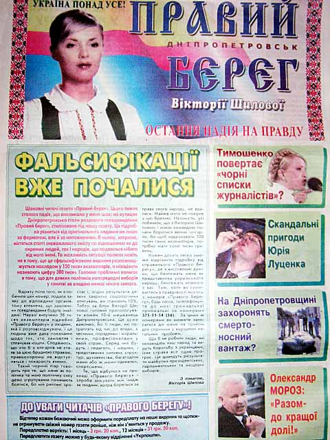 В той же час газета "Правий берег", яку випускає і редагує Шилова, рясніє заголовками штибу: "Тимошенко повертає "чорні списки журналістів"?"; "Схема підкупу виборців придумана технологами БЮТ?"; "Тимошенко влаштує Україні "Холодомор"; "На фінансування потреб Тимошенко вкрадено 6 мільярдів?", "Олександр Мороз: "Луценко робить ставку на Тимошенко, але мине ще небагато часу і він буде її ВОРОГОМ" - зокрема такі публікації були надруковані в грудневому "ПБ" №9 за 2009 р.