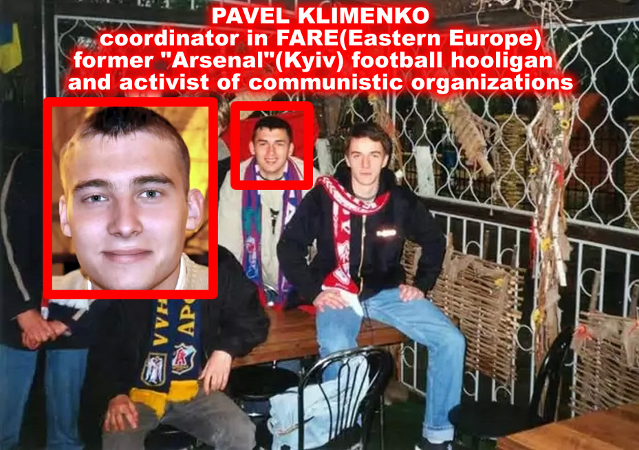 Для того, аби було зрозуміло, яке середовище представляє координатор програм FARE Клименко, також зазначимо, що він і нині співпрацює з Олегом Верником та Дудіним. Але вже в рамках комуністичної профспілки «Захист праці». Її голова – Олег Верник, який очолює представництво фонду CIS - EMO по Україні. А в цьому фонді, в свою чергу, головує багаторічний політолог Кремля Олексій Кочетков, у минулому - член російської шовіністичної структури РНЕ (за даними сайту from-ua). В своїй статті для комуністичного сайту Клименко також згадує друга Антона Шеховцова, дослідника політичного радикалізму, який публічно заявляв в інтерв’ю закордонній пресі, що українські фанати «розміщують портрети фашиста Степана Бандери». Шеховцов був членом «Євразійського союзу молоді», чия діяльність на території України заборонена СБУ – через плюндрування державного гербу України на горі Говерлі.