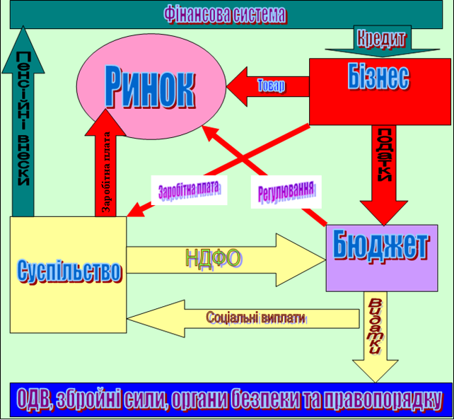 Окремо зауважу, що кожний елемент схеми відповідає окремому суб’єкту відносин, в тому числі тим, які в подальшому необхідно створити, зокрема «Бюджет» і «Ринок».