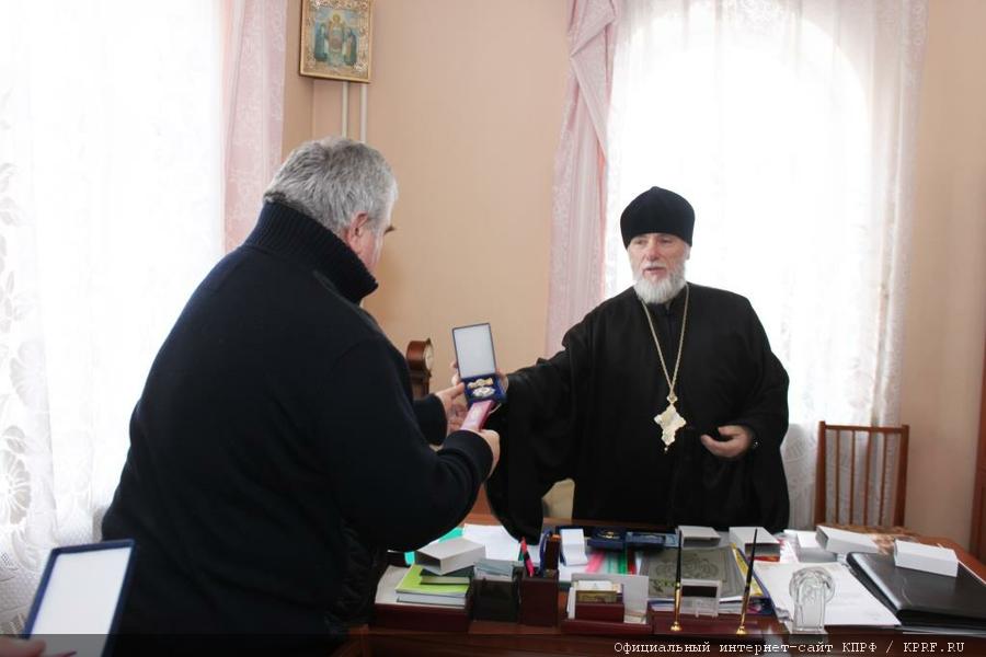 Медаль сию протоиерей Конончук Владимир Васильевич передал Зюганову 8-го февраля 2015 г. через его посланников Казбека Тайсаева (первый зам. Председателя ЦС СКП-КПСС, секретарь ЦК КПРФ, депутат Госдумы ФС РФ) и Владимира Родина (секретарь МГК КПРФ, депутат Госдумы ФС РФ), которые в период с 6-го по 8-е февраля, как всегда, незаконным образом проникли на территорию Украины и занимались на ней, кроме всего прочего, деятельностью, направленной на подрыв ее национальной безопасности.