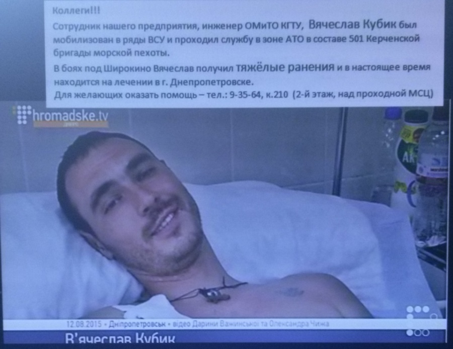 Надо отметить, что со времени аннексии Крыма и разгорания вооруженного конфликта на востоке нашей страны, учитывая расхождения во мнениях и политических предпочтениях работников предприятия, администрация комплекса пошла на такую меру, как запрет на политическую агитацию на территории предприятия. Но призыв о помощи ренному мобилизованному коллеге, который находится в госпитале и нуждается в лечении, сложно отнести к политике, не говоря уже о моральной стороне вопроса.