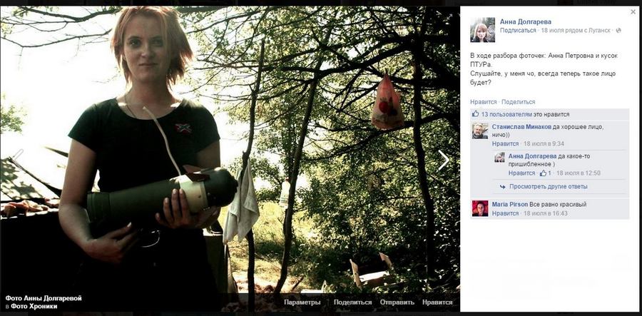 Живет себе в Санкт-Петербурге, а также периодически и в Луганске, такая себе девушка, Анна Долгарева (коммунистка, поэтесса и просто красавица), которая давно уже активно работает на такие известные своей "правдивостью" информагенства как, NewsFront, Novoross, Rusvesna. Пишет она кроме стихов очерки о ЛНР. Ведет активную агитацию в Живом Журнале, ВКонтакте, Фейсбуке.
