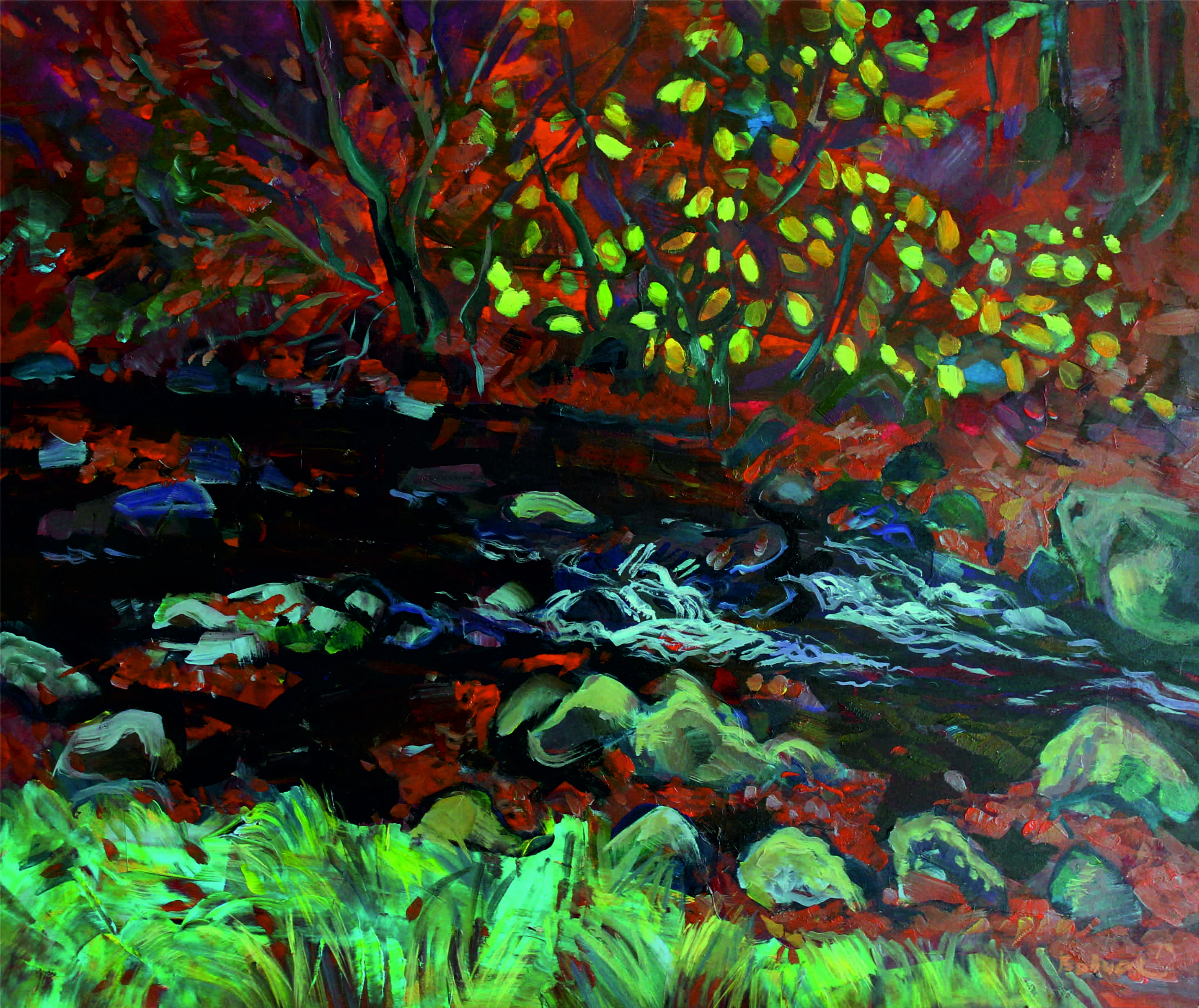 А який колоритний місцевий діалект української мови! Тільки народ володіє здоровим творчим інстинктом у сфері мови, люди освічені часто проявляють себе не найкращим чином. Для створення нового літературного слова, найкращий «гумус» то говірки з різних місцевостей України. Жива людська мова – невичерпне джерело наповнення слів мови літературної. З багатьох картин митця їх герої промовляють саме на місцевому діалекті. Гордістю краю є і сучасні співаки – С. Гіга і І. Попович, їхній спів сповнений елементами фольклору. А звуки трембіт, це загадкова музична мова горянських музик. Василь Вовчок, жодних сумнівів, художник – традиціоналіст. Ось перед нами картина, на якій оживають парадокси природи – «Останні барви літа». Повсюдно раюють кольори осені, але понад річечкою, котра кудись поспішає, виблискує світло – зеленими відтінками кущ, котрий не піддається осіннім настроям, зеленава прирічкова трава нагадує нам, що осінь непомітно таки вступила у свої законні права.
