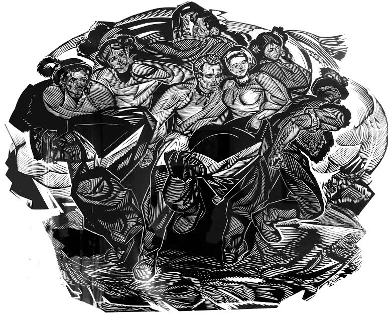 Наприклад, найбільше мою увагу «притягнула» графічна композиція «Аркан». Старовинний чоловічий танець, який танцюють колом (рондо!), або півколом. Поширений у ареалі Закарпаття, Буковини, Прикарпаття. Що єднає ці території України? Карпати! Митцеві вдалося прекрасно передати динаміку руху танцівників, натхненне горіння їхніх душ, утаємниченість цього дійства. Це не звичайний танок, а обряд посвячення хлопців у легіні. Після ініціації легінь здобував право носити бартку, підперезуватися широким паском, цебто, ставав вояком, опришком. Слово аркан походження етруського, запозичене римлянами – «arcanus», етимологія якого – прихований, таємний. Деякі науковці стверджують – що існували колись утаємничені ордени, чоловічі і жіночі ( професор Ю.Шилов, зокрема). Нібито у гористій місцевості орден іменувався «Аркан», у рівнинно – степовій - «Гопак». Загадка танцю, віковічні таємниці гір, історичні і мистецькі загадки…