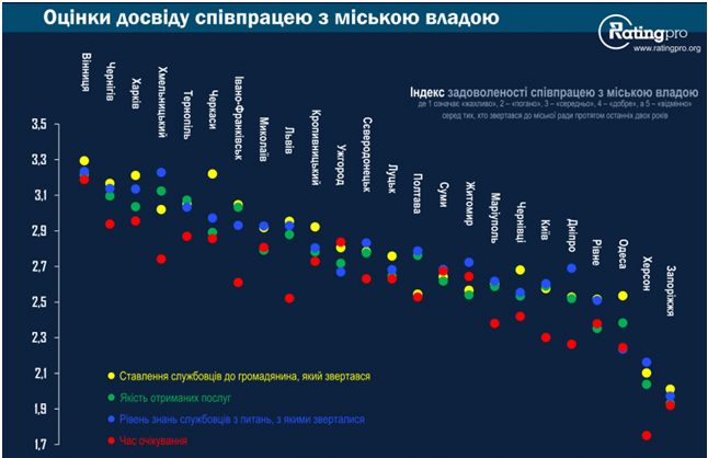 Ще цікавіша оцінка досвіду співпраці з місцевою владою. Запоріжжя тут на останньому місці. І доречно нагадати, що міський голова Володимир Буряк балотувався з гаслом «Мер для кожного».