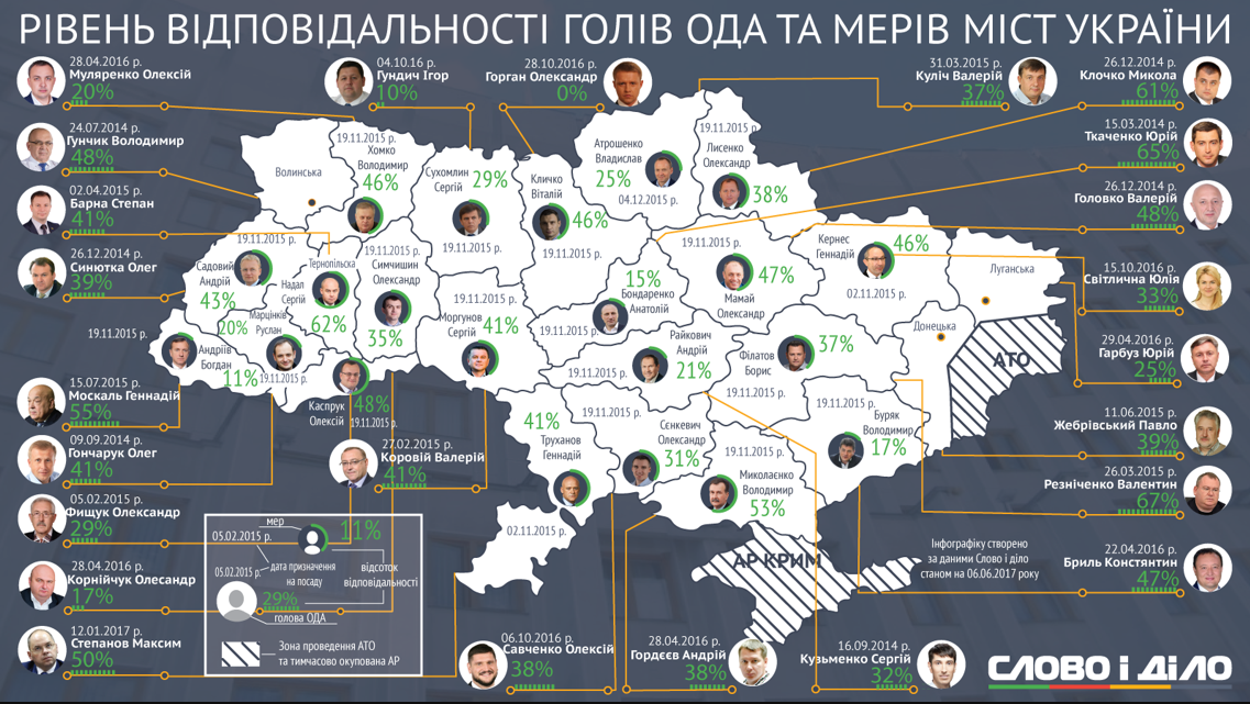 Наостанок – найсвіжіший рейтинг, опублікований ресурсом "Слово і Діло" 6 червня. Цей сайт досліджує обіцянки політиків. Зокрема, очільників ОДА та міських рад. Не повірите, але ми у п'ятірці аутсайдерів. Найбільш безвідповідальні мери України на даний момент працюють в Ужгороді, Черкасах, Запоріжжі, Івано-Франківську та Кропивницькому. Рівень відповідальності міських голів в цих містах коливається між 11 і 21% виконаних обіцянок. У запорізького міського голови він склав 17 відсотків.