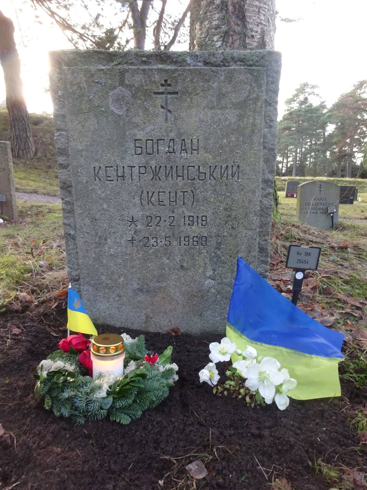 Богдан Кентржинський - наприкінці 1930-х рр. стає членом ОУН (псевдо "Кент" вказано на могилі). З 1941 р. - уповноважений ОУН у Фінляндії. У 1942 р. заснував у Гельсінки Українське інформаційне бюро для Фінляндії і Скандинавії, яке у 1942-44 видало понад 800 статей 4 мовами у фінській пресі. У 1949 р. засновує в Стокгольмі Українське інформаційне бюро на Скандинавію та Український академічний клуб. Досліджував та перекладав праці на тему союзу Мазепи та Карла XII. Був журналістом Daily Telegraph, Associated Press та багатьох інших видань.