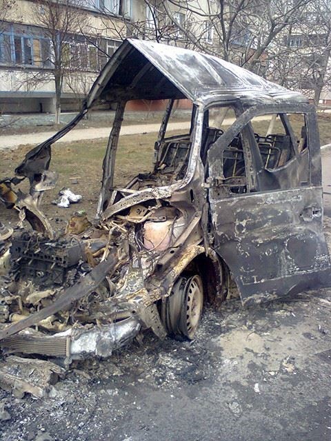 «Щойно дістав портмоне, як почув страшний звук, і з метою безпеки ліг на підлогу магазина… Снаряд «Граду» впав десь за сім метрів від магазину… Після обстрілу в мене довго був шок. Я неадекватно реагував на стукіт трамвая по рельсах. У результаті влучання снаряду автомобіль було повністю знищено», – пригадує постраждалий.