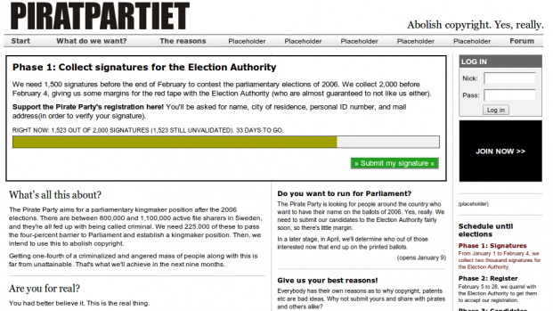 У випадку з Піратською партією спусковим механізмом для здобуття кількості учасників були файлообмінні системи. У 2006 році близько 1,2 мільйонів громадян – виборців – Швеції обмінювалися культурою та знаннями всупереч монополії власників авторських прав, і не бачили в цьому нічого поганого, але владні кола їх постійно демонізували.
