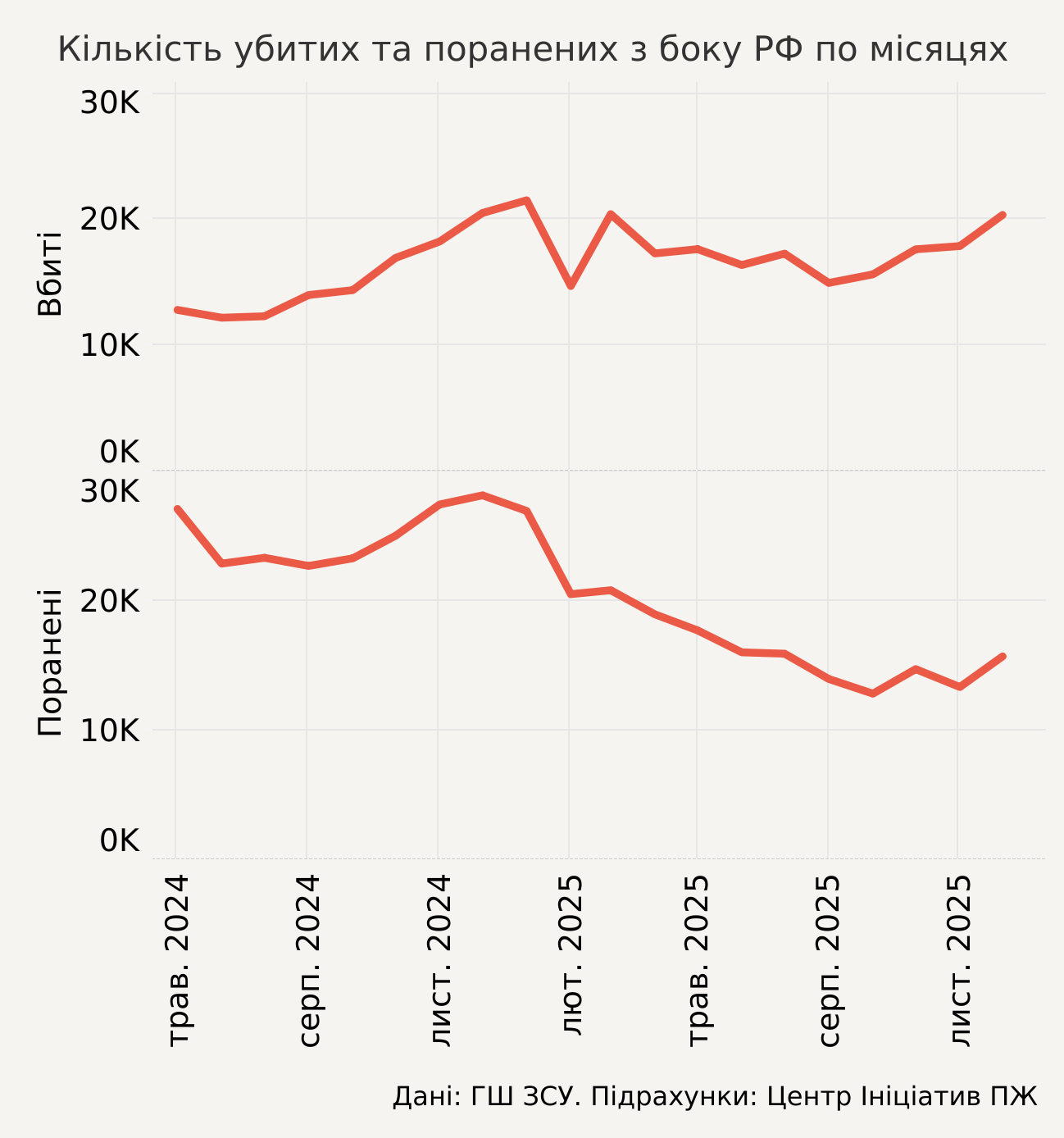 Як результат — у пікові періоди 2025 року сили РФ втрачали близько 21 тисячі військовослужбовців убитими на місяць. Реальні безповоротні втрати можуть бути ще більшими, оскільки принаймні частина важкопоранених не зможе повернутися на поле бою.