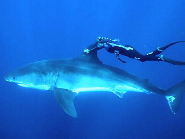 На Гаваях мініатюрна блондинка з Гонолулу не тільки наважилася наблизитися до великої білої акули, що найчастіше нападає на людей, але й схопити її за плавник і проплисти поруч. Оушен Рамсі своєю акцією спробувала привернути увагу людей до того, що акули цього виду перебувають на межі вимирання.